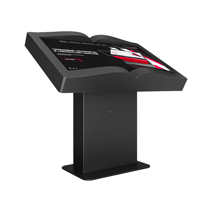 Интерактивный стол Book 43” – устройство, форм-фактор которого реализован в форме раскрытой книги. Механическая регулировка дисплея позволит настроить пользователям оптимальный угол для взаимодействия с программным обеспечением. Оборудование может быть дополнено информационным приложением или интерактивной книгой с эффектом пролистывания страниц.