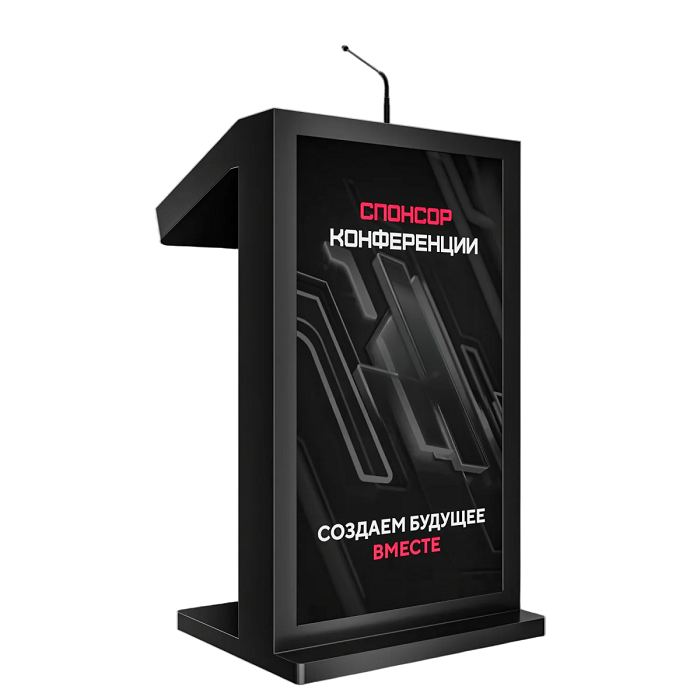 Мультимедийное решение, которое позволяет не только ярко выступить на большую аудиторию, с отображением презентационного материала, но и эффектно продемонстрировать рекламную информацию о компании, предлагаемых товарах / услугах, спикере, на большом внешнем дисплее трибуны. Модель Double 21,5" оснащена мощным микрофоном, сенсорным дисплеем для спикера, а также большим внешним дисплеем для рекламного контента и набором разъемов для подключения дополнительной техники. Такая трибуна станет прекрасным помощником на конференциях, выставках, спортивных мероприятиях или других мероприятиях, где требуется визуальная поддержка презентаций и общение с аудиторией.