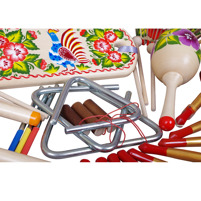Набор шумовых инструментов (в том числе: треугольник, набор колокольчиков)