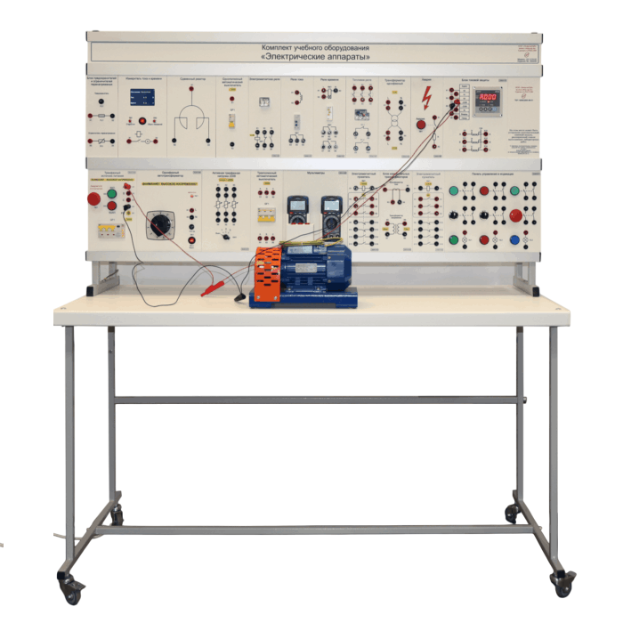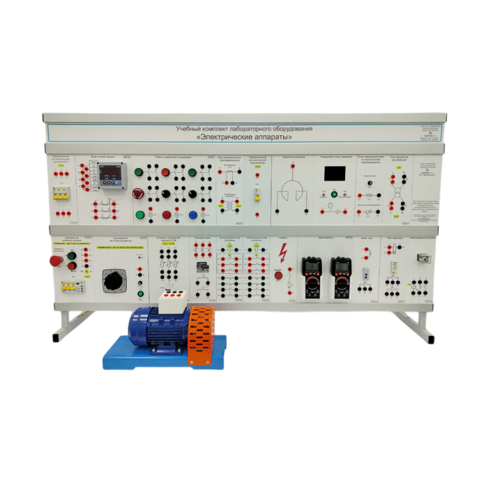 Комплект учебного оборудования «Электрические аппараты» предназначен для проведения лабораторно-практических занятий в высших и средних профессиональных образовательных учреждениях, для получения базовых и углубленных профессиональных знаний и навыков. Стенд позволяет проводить лабораторные работы по темам "Аппараты управления" и "Аппараты распределительных устройств".