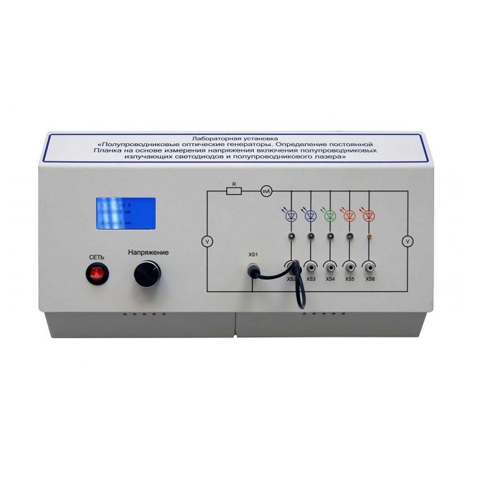 Лабораторная установка формирует одно рабочее место и обеспечивает проведение эксперимента по теме «Полупроводниковые излучатели» учебного лабораторного практикума. Лабораторный комплекс используется для постановки лабораторных работ и проведения практических и демонстрационных занятий по курсу «Квантовая (Атомная) физика» и «Электричество и магнетизм».