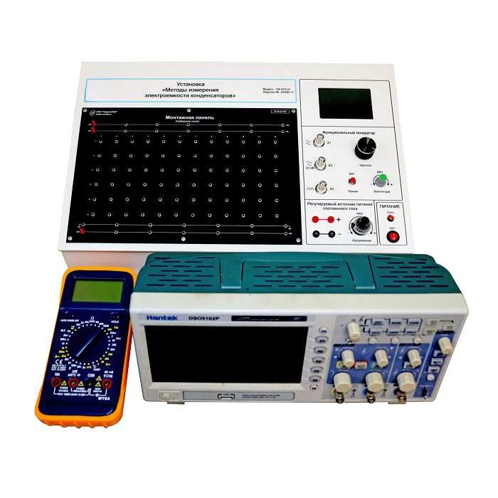 Учебная установка предназначена для изучения методов измерения электроемкости конденсаторов.